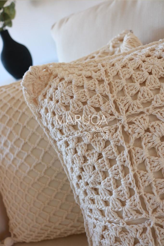 Realizado en hilo de algodón relleno de vellón siliconado, la parte tejida está cocida a la funda.