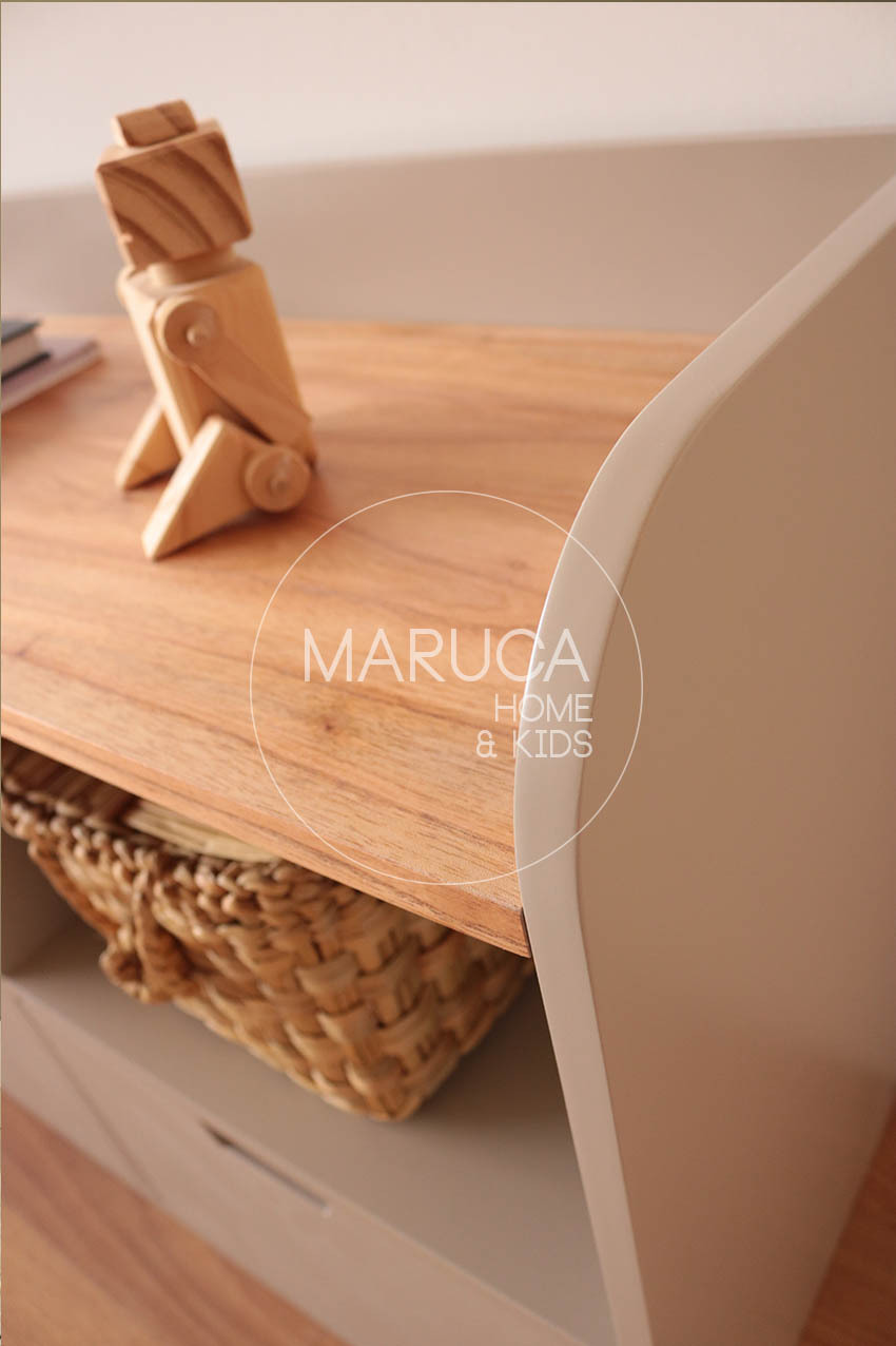 Material: MDF de 15 mm de espesor de alta densidad y laqueado poliuretanico. Para los productos con madera, la misma es placa de MDF enchapada en PARAISO.